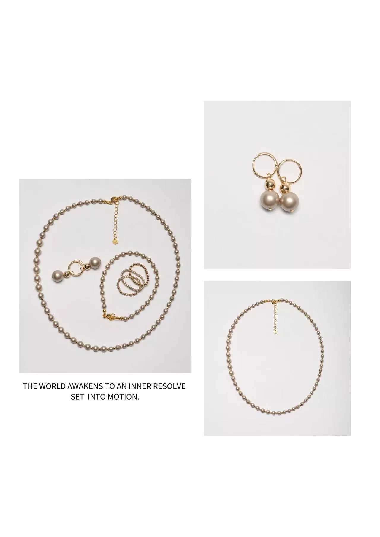 大小漸變的香檳金珍珠與美國包金小珠,串聯成咖啡液的光譜